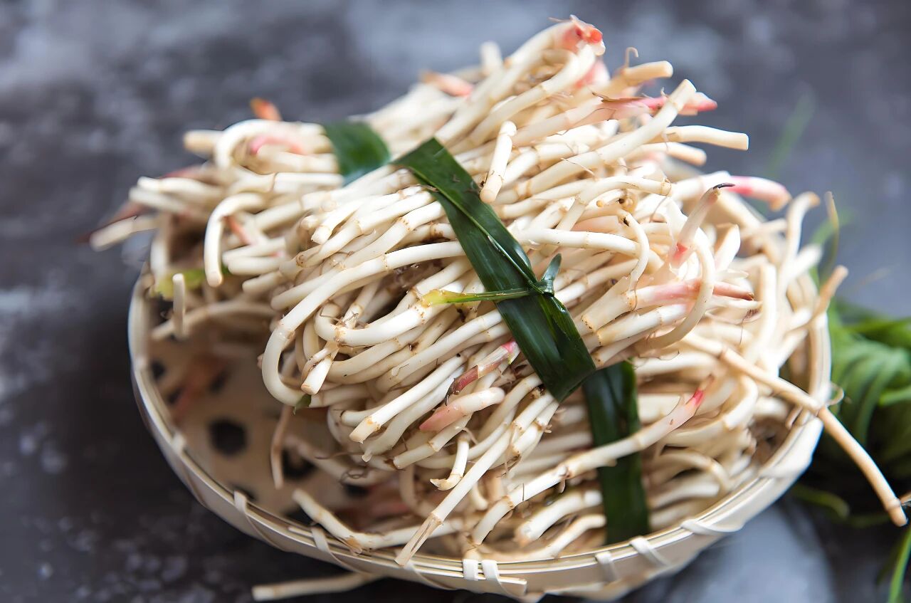 向东走,在东南地区,马兰头是春日家常餐桌上的常客。它喜湿润气候,叶片细长、茎部微紫,具有清热利湿、消积的传统药用价值。焯水后凉拌,常与豆腐、香干同拌,是江浙一带的春日风味代表。