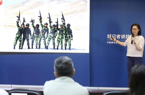 8月16日,北京中青大厦,来自中国青年报社中青在线的记者戴月婷做主题为《找你找到天山深处 祖孙三代守望168座丰碑》的演讲。当日,中国青年报社青年人才周系列活动“好记者讲好故事”初赛在北京中青大厦举行。来自报社的6位一线记者就自己采访领域中遇到的感人故事,给现场和线上的听众做了声情并茂的分享。中青报·中青网记者 陈剑/摄