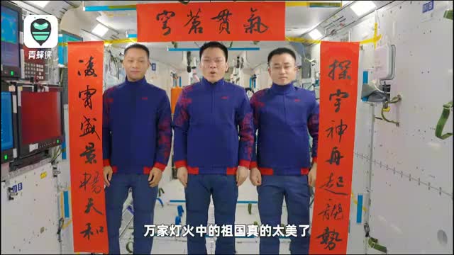 中国空间站贴春联 神十七航天员换“祥云服”给全国各族人民拜年