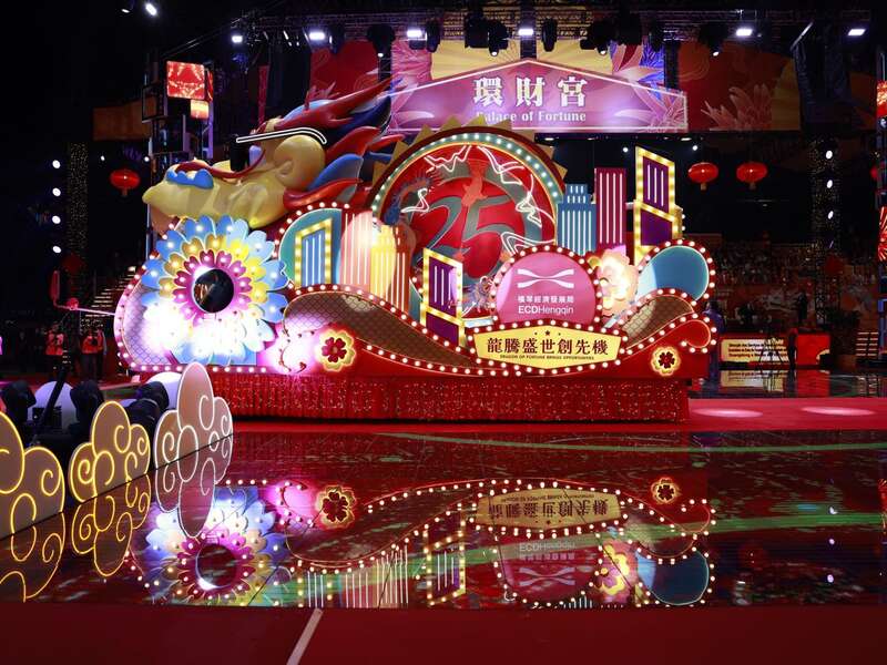 澳门大年初三上演花车巡游及烟花表演 市民游客欢声笑语共贺新春