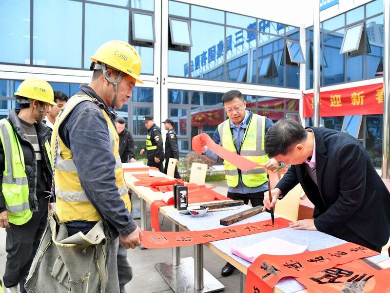 一些工人还尝试书写“福”字,感受中国书法的魅力。