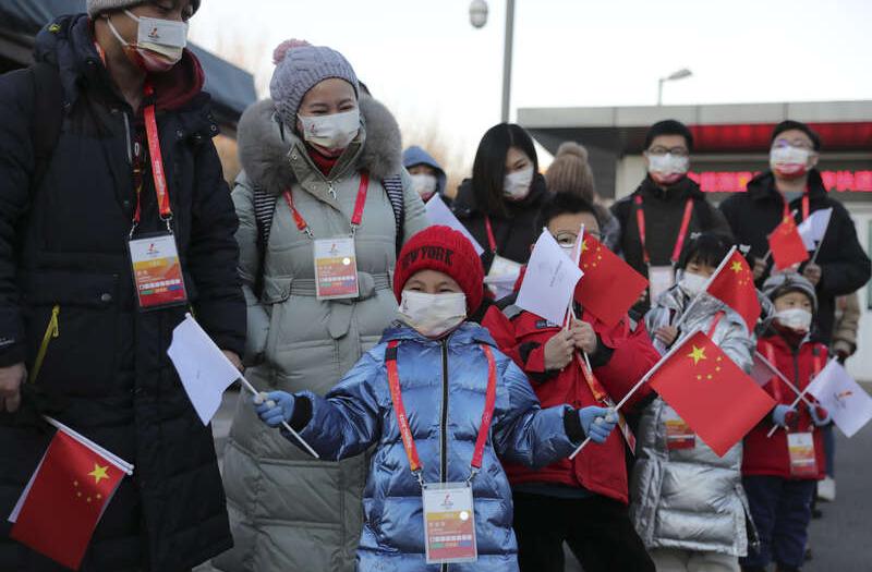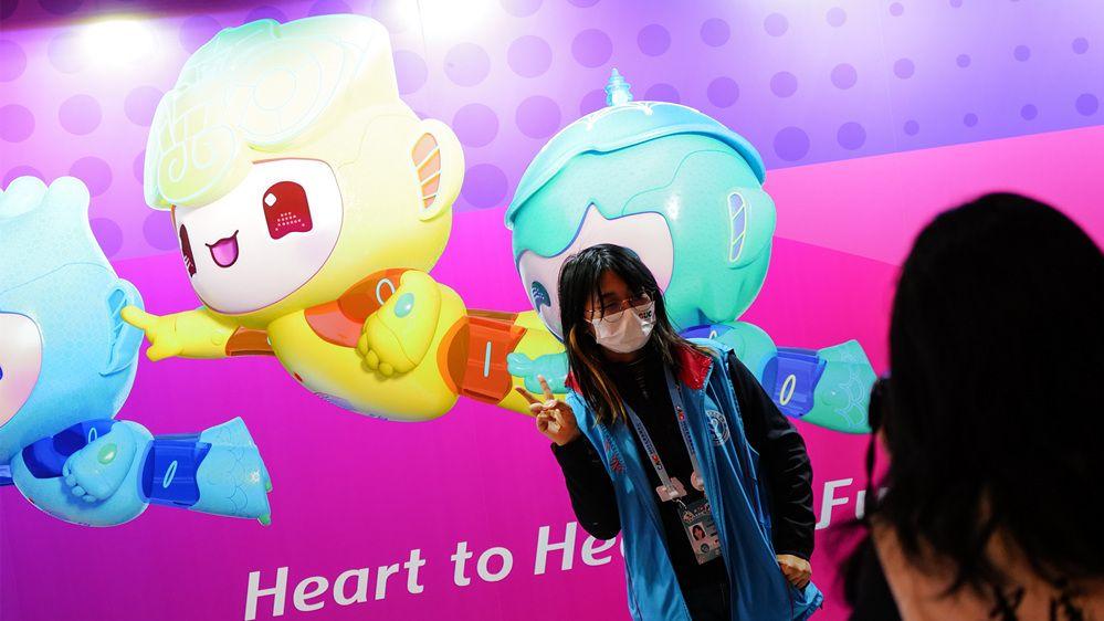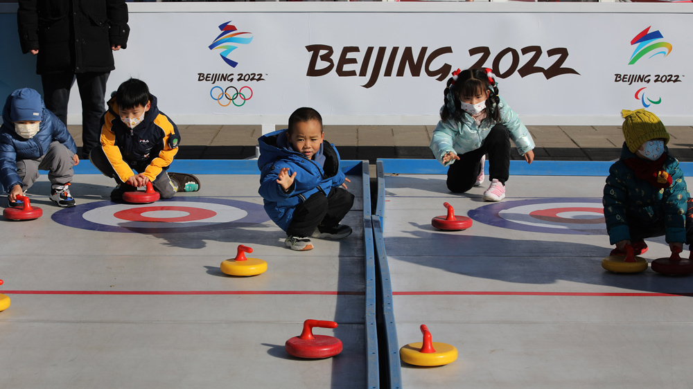 在冬奥场馆附近感受冰雪运动的乐趣。