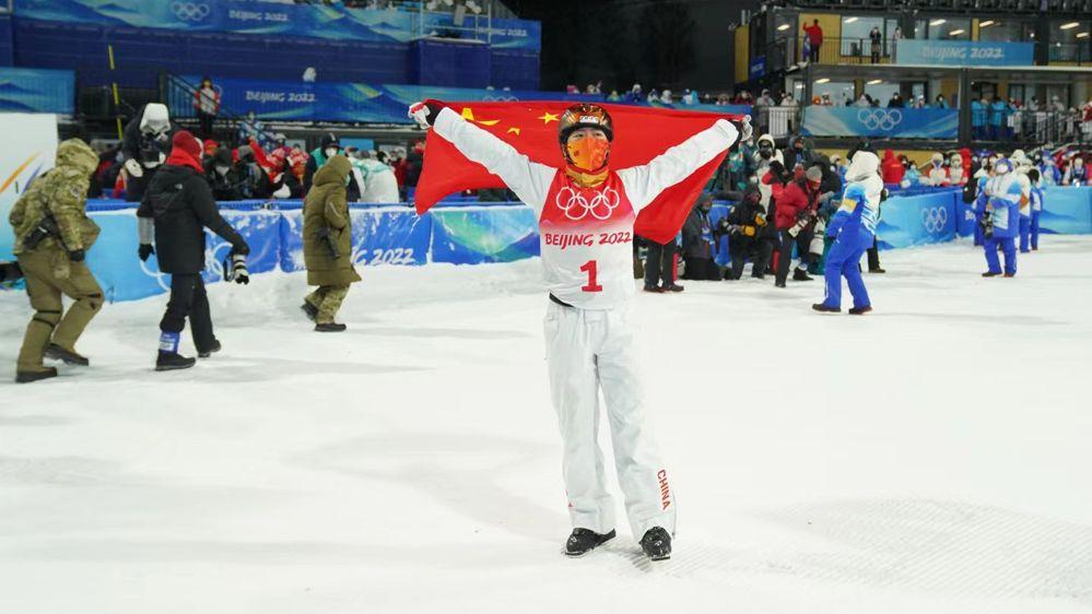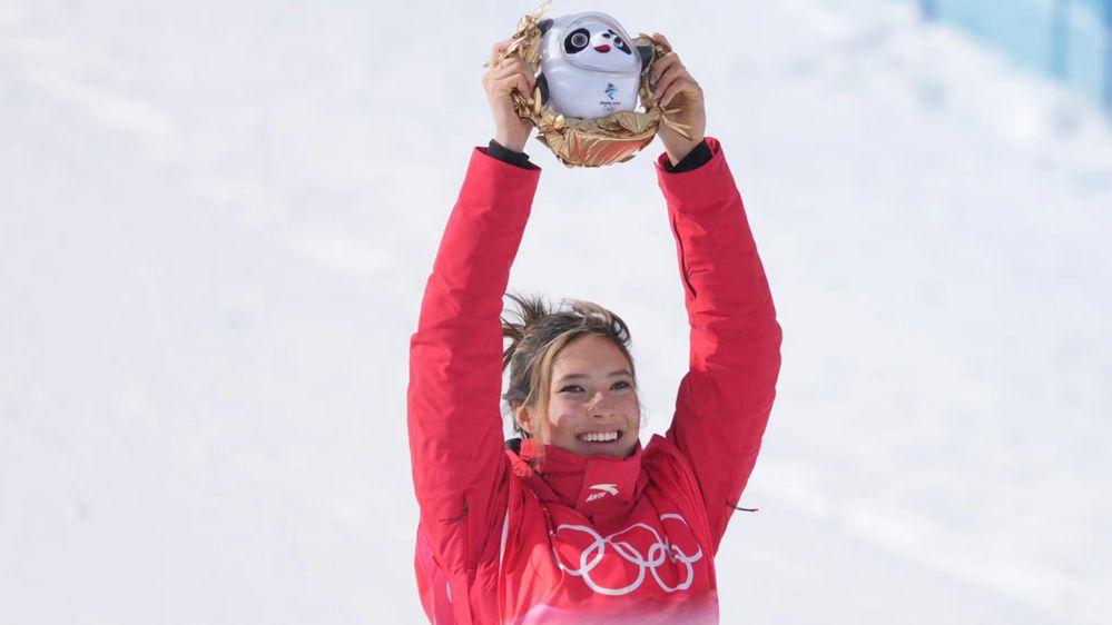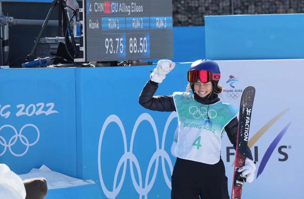 谷爱凌获得冬奥会历史上首枚自由式滑雪女子大跳台金牌。
