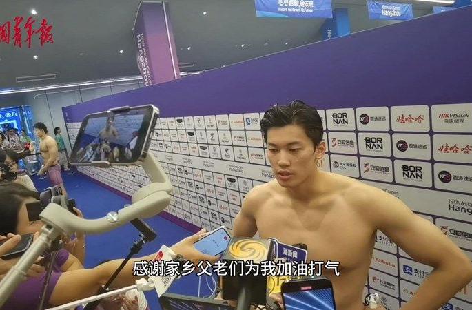 汪顺表示,自己没想到能游的这么好,感谢家乡父老给我力量。