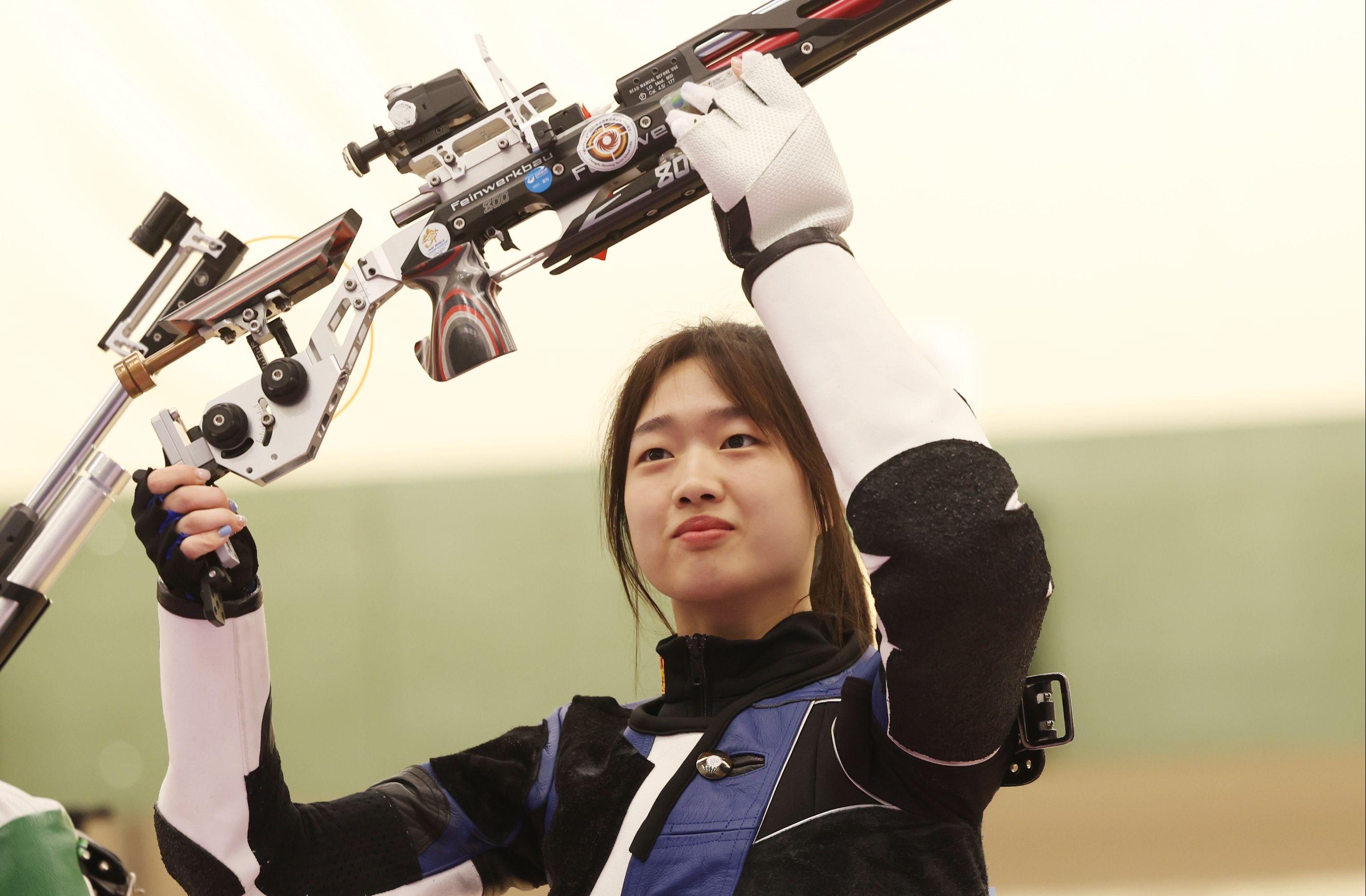 黄雨婷夺冠成绩252.7环,韩佳予获银牌,成绩251.3环。