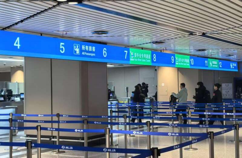 哈尔滨机场口岸迎来首批亚冬会团组入境