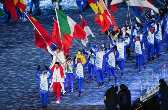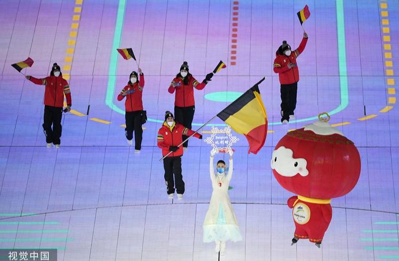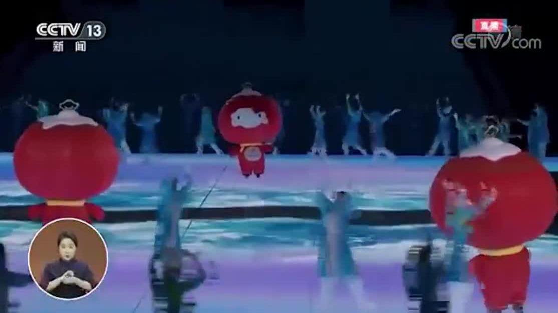 北京冬残奥会开幕式上,四个雪融容划出欢迎字样,运动员入场。