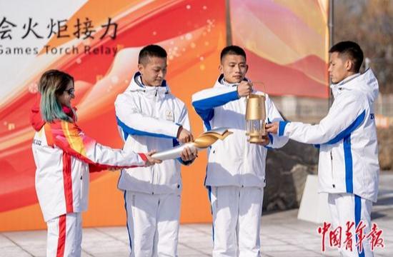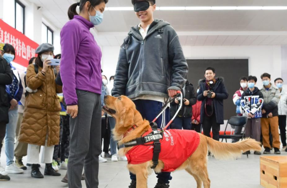 引导员胸前的雪容融是残疾人一针一线缝制的。