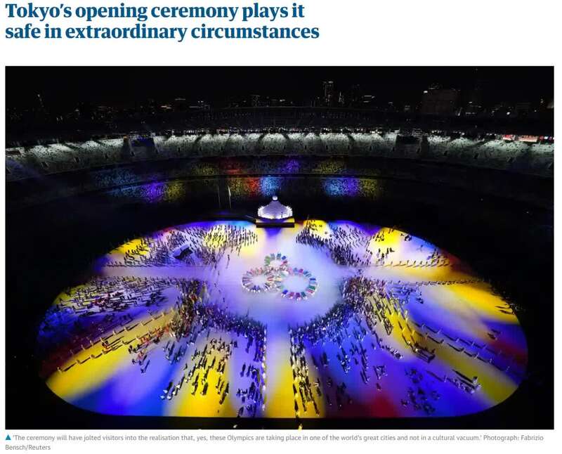 东京奥运会开幕式现场传递特殊信号。《卫报》报道截图