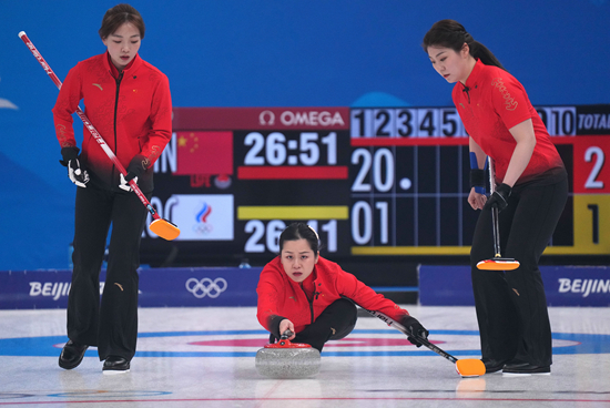 2月15日,北京冬奥会冰壶女子循环赛,中国队以5∶11负于俄罗斯奥委会队。 视觉中国供图
