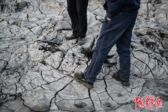 12月13日,一处已经干涸裂纹的违规固废填埋区。本版照片均由中青报·中青网记者 李隽辉/摄