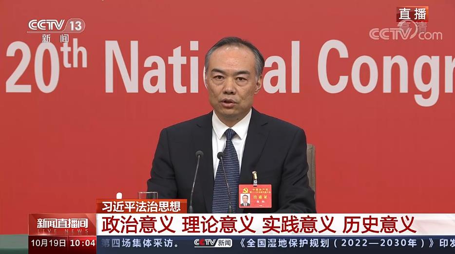 中国青年报客户端北京10月19日电(中青报·中青网记者 刘世昕 张国 胡春艳 王鑫昕)今天上午,在党的二十大新闻中心举行的第三场记者招待会上,中央政法委副秘书长訚柏表示,过去十年,社会主义法治国家建设深入推进,在党的历史上写下了三个“第一次”。