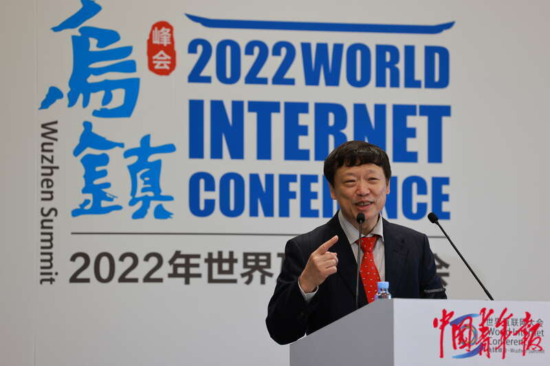 11月10日,浙江省桐乡市乌镇互联网国际会展中心,2022年世界互联网大会乌镇峰会分论坛之一“疫情下的数字社会”现场,《环球时报》原总编辑胡锡进发言。他说,从报人到坐拥几千万粉丝的KOL(关键意见领袖),他的身份变化完全是互联网塑造的。他认为“疫情对数字时代形成了倒逼式的促进”,许多线下需求转移到了线上,“这必将促进更加强大的互联网基础设施建设,增强全社会的每一个成员的互联网意识。”中青报·中青网记者 曲俊燕/摄
