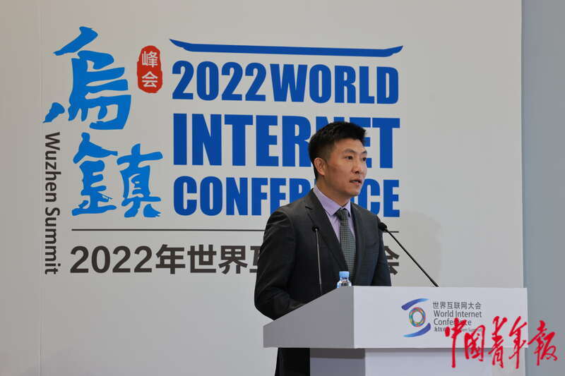 11月10日,浙江省桐乡市乌镇互联网国际会展中心,2022年世界互联网大会乌镇峰会分论坛之一“疫情下的数字社会”现场,量子之歌联合创始兼执行总裁白柏进行分享。作为知识付费产品的创始人,他表示,满足不同细分人群差异化的学习需求仍然是未来值得研究的方向,他们将为用户提供涵盖多领域的终身学习平台。中青报·中青网记者 曲俊燕/摄