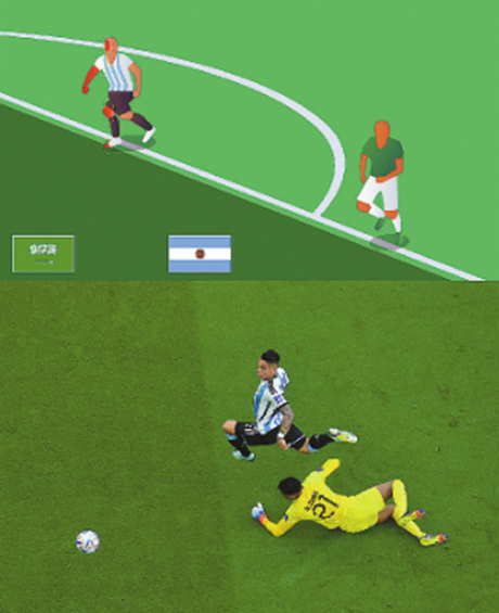 从揭幕战第三分钟开始,一张张蓝色背景印有球员3D动画的截图就频频出现在赛场的大屏幕上。自它们出现,本届世界杯的首个“进球”被判无效,阿根廷队4次击球入网,却以1∶2的比分不敌沙特队,爆出惊天冷门。