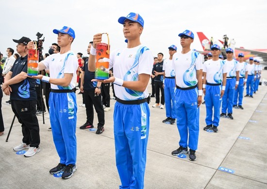成都大运会火炬火种搭乘“大运号”航班抵京