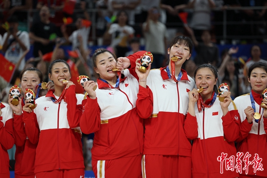 “韩旭是我在清华附中的师姐,我一直以她为榜样。能够在这个比赛场上相遇,也是我们的缘分。”夺冠后,刘禹彤哭了,虽然她在大学篮球赛场上品尝过冠军的滋味,但在成都大运会夺冠,对刘禹彤来说,无疑是职业生涯最重要的一场胜利,“可能是因为太激动了,所以都快喊缺氧了,因为这是我18岁以后第一次拿世界级比赛的冠军”。