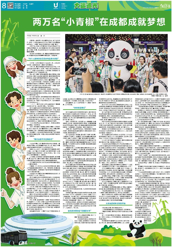 还有更多年轻人带着对成都、对四川朴素而真挚的情感。不少志愿者都认为,作为“小青椒”亮相世界舞台,就是展现最好的成都,也展现最好的自己。