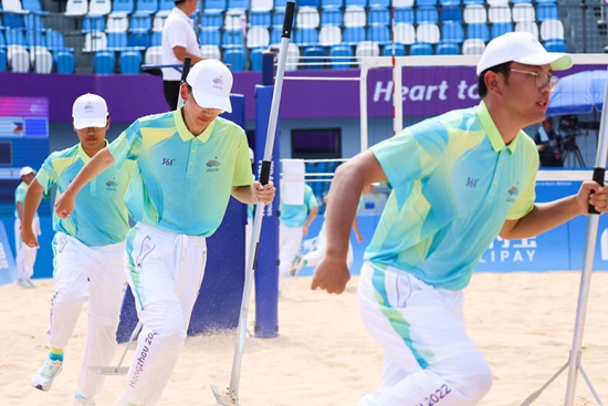 此外,本届亚运会开幕式取消燃放实体烟花,将通过三维动画、AR技术,在一张185米长、15米高的“网幕”上展示电子烟花,同时配上音效,形成视觉和听觉的双重体验。沙晓岚介绍:“电视机前观众看到的烟花效果,不逊于实体烟花,甚至通过航拍,还能看到从未看见过的烟花效果。”