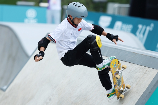 从街头走上亚运会甚至奥运会赛场,滑板给了一代年轻人“用体育看世界”的窗口,也为中国滑板队按下了“白手起家”的启动键。为了备战,跨项选材就成了一条推动中国滑板运动发展的“捷径”。张鑫、本届亚运会将参加女子街式项目的曾文蕙,以及今天站上领奖台的李玉娟、毛嘉思均是通过跨项选材加入滑板的。