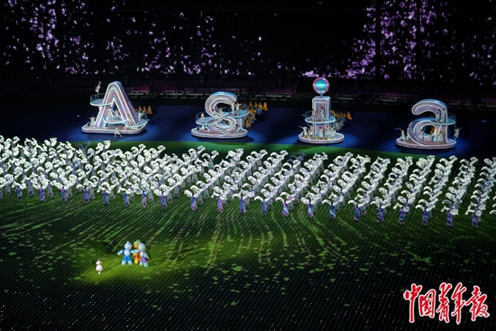 在今晚的闭幕式上,巨大的“Asia”(亚洲)标识连同澎湃的钱江潮水“自天而来”,一朵由亿万民众给出的“记忆”关键词凝结出的亚运“荷桂记忆之花”悄然绽放。这些充满意蕴的画面构成了有关杭州亚运会新的共同记忆。亚洲一家,携手同行。