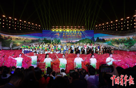 今晚的广西南宁青秀山铜鼓广场成为活力四射的青春主场,学生、青年运动员代表们在这里依依惜别、相约未来。在过去的10天里,他们在第一届全国学生(青年)运动会上以奋斗展现青春底色、以成长书写民族希望。今天,当本届学青会的比赛全部落下帷幕,他们无愧于“青春当勇毅,奋斗绽芳华”的荣光。