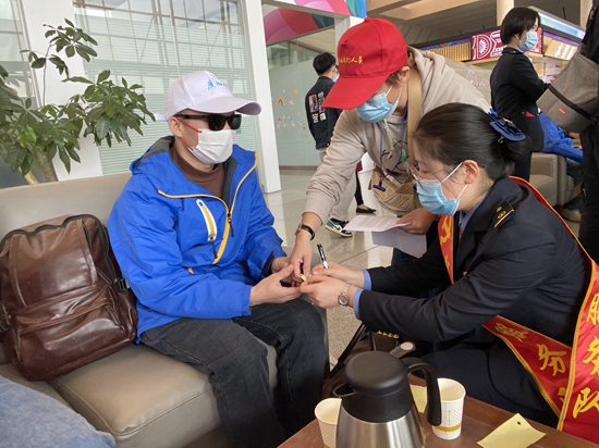 对于这些视障旅客来说,这一个电话、一张卡片、一个搀扶,就是他们回家的“眼睛”。