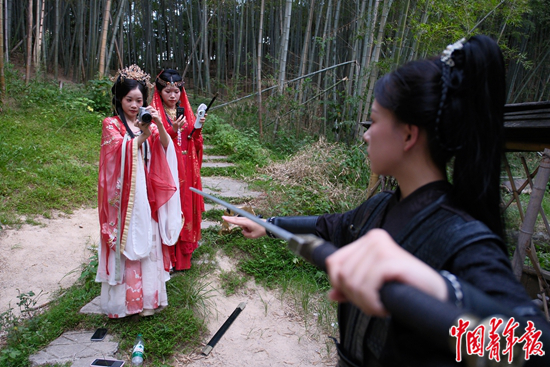 这天,3人都没接到通告,决定一起前往横店的免费景点拍摄古装写真。她们租了精致的古装,搭配比平时拍戏更为精致的妆容。当被问到为什么平时演戏穿古装,拍写真还要穿古装时,陈余绮回头一笑,说:“因为今天要做自己的主角。”