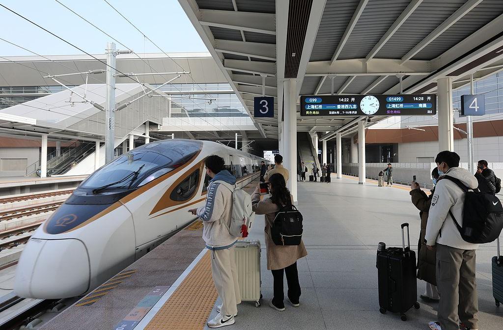 2025年春运广州站发出第一趟列车,旅客满脸微笑小跑上车:能回家团圆是今天最开心的事