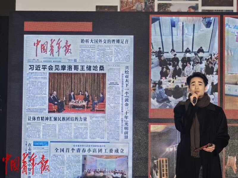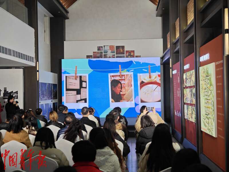 1月15日,“那一束暖春的光”重庆会场,与会嘉宾观看由中青报与团重庆市委联合制作的青春小店探店视频。中青报·中青网记者 耿学清/摄