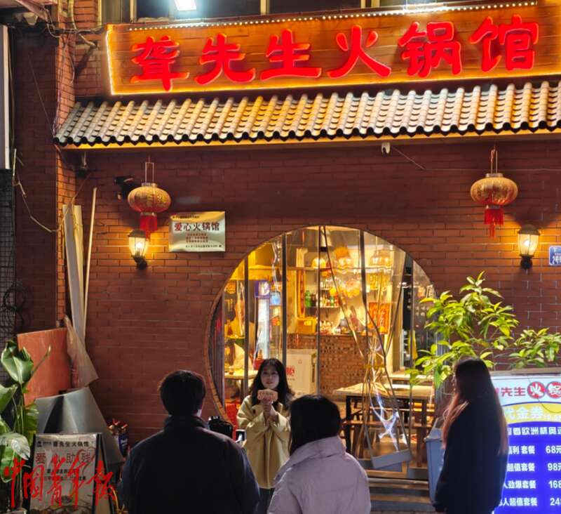 1月11日,重庆两江新区,青春小店探店团队在爱心火锅店拍摄。这家“聋先生”火锅店由听障人士王涛创建,店内员工也有听障人士,与顾客交流时,员工常常打手语、写字,这在热闹喧嚣的火锅行业中显得非常特别而温馨。中青报·中青网记者 耿学清/摄