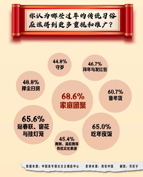 超七成受访者认为春节申遗成功激发年轻人对传统文化的兴趣