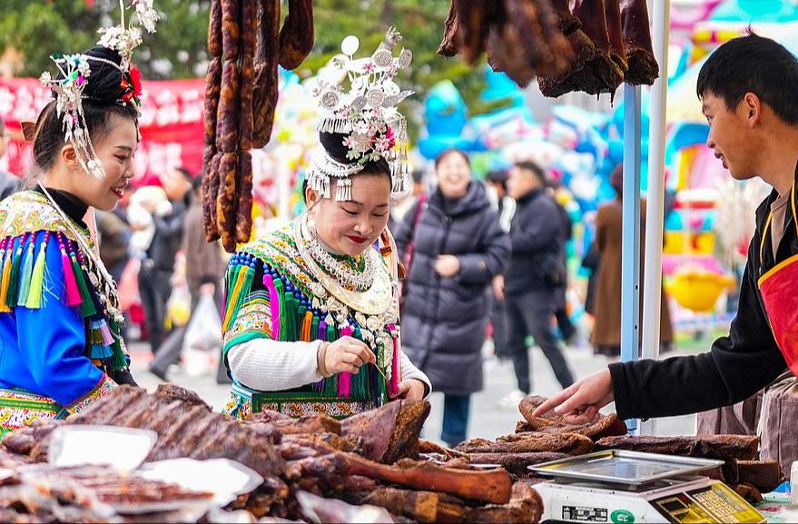贵州黔东南州:近700种产品亮相“村超村集” 市民精心挑选年货