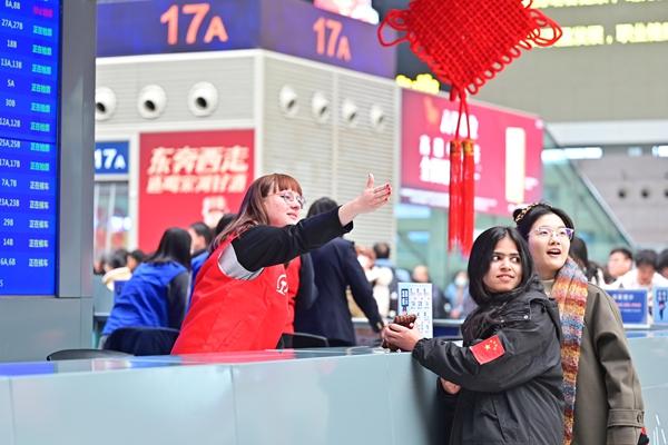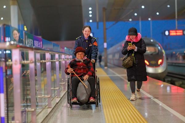 一趟趟列车,承载的不仅仅是旅客归家的期盼,更是铁路人温馨服务、安全护航的决心。驾驶室里,机车司机目光如炬精准操作,驰骋万里回家路,“手握闸把子、心系坐车人”是他们不变的信念;站台上,客运员优质贴心的服务温暖着南来北往的旅客;车厢内,随车机械师时刻监控车组设备状况,“火眼金睛”精检细修,不放过任何安全隐患……