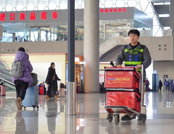 高铁外卖相较于普通外卖,“最大的挑战就是配送时间必须非常精确,路上稍微耽搁一点,车可能就开走了。有时候还会遇到临时变更站台的情况,非常考验团队的协调配合能力”。张焱说,“今年春运以来,我的按时到达率依旧是100%,我要继续保持”。