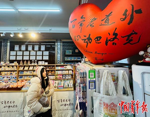 1月13日,中青报·中青网记者在“松光里”看到,以东北虎为原型的贴纸、蔬菜造型的毛绒挂件、名人堂系列明信片……一件件充满巧思与特色的产品,把中西合璧的建筑风貌,装点得更加洋气、灵动,这背后都是年轻人满满的创意。