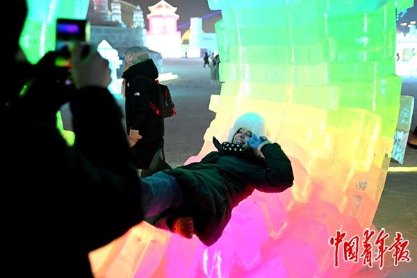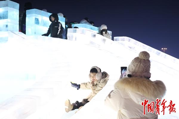 1月13日,游客们在哈尔滨冰雪大世界体验冰雪的快乐。哈尔滨迎来了火热的冰雪季,冰雪大世界的游客接待数量在开业第20天即突破100万大关,创下26届以来之最。中青报·中青网记者 王鑫昕/摄
