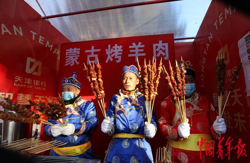本届地坛与龙潭庙会还通过线上平台联合招募“年味美食”与“年礼好物”。地坛庙会以挑动舌尖的“年味大餐”打造“最解乡愁的年味美食大全”,东来顺、锦芳、六必居等多家北京老字号携手河北、四川、江西、青海、内蒙古、山西等地的特色美食惊艳亮相,让游客们在庙会现场沉浸式探索中国丰富多样的饮食文化。聚焦“都会烟火”味道的龙潭庙会不仅集结了全聚德、门框卤煮、丰泽园等传统北京味道,还囊括了天坛福饮、天桥茶汤等新派北京小吃,新旧美食的碰撞,让现场无处不散发着地道的京城烟火气息。中青报·中青网记者 李建泉/摄