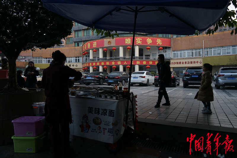 1月29日,重庆江津,一个女人在镇政府门前摆摊卖凉面。中青报·中青网记者 李强/摄
