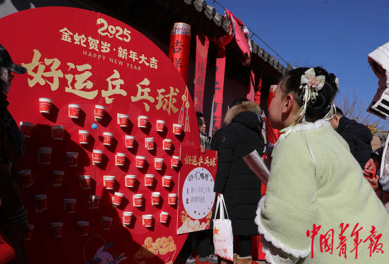 2月3日,北京古观象台,一位小朋友在游园活动上参与“好运乒乓球”趣味游戏。中青报·中青网记者 陈剑/摄