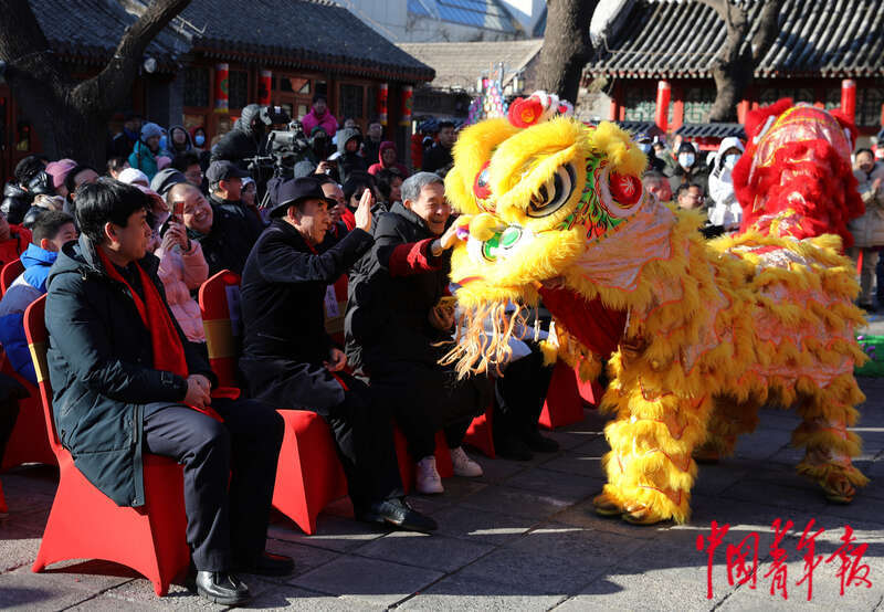 2月3日,北京古观象台,舞狮表演与嘉宾和观众互动。中青报·中青网记者 陈剑/摄