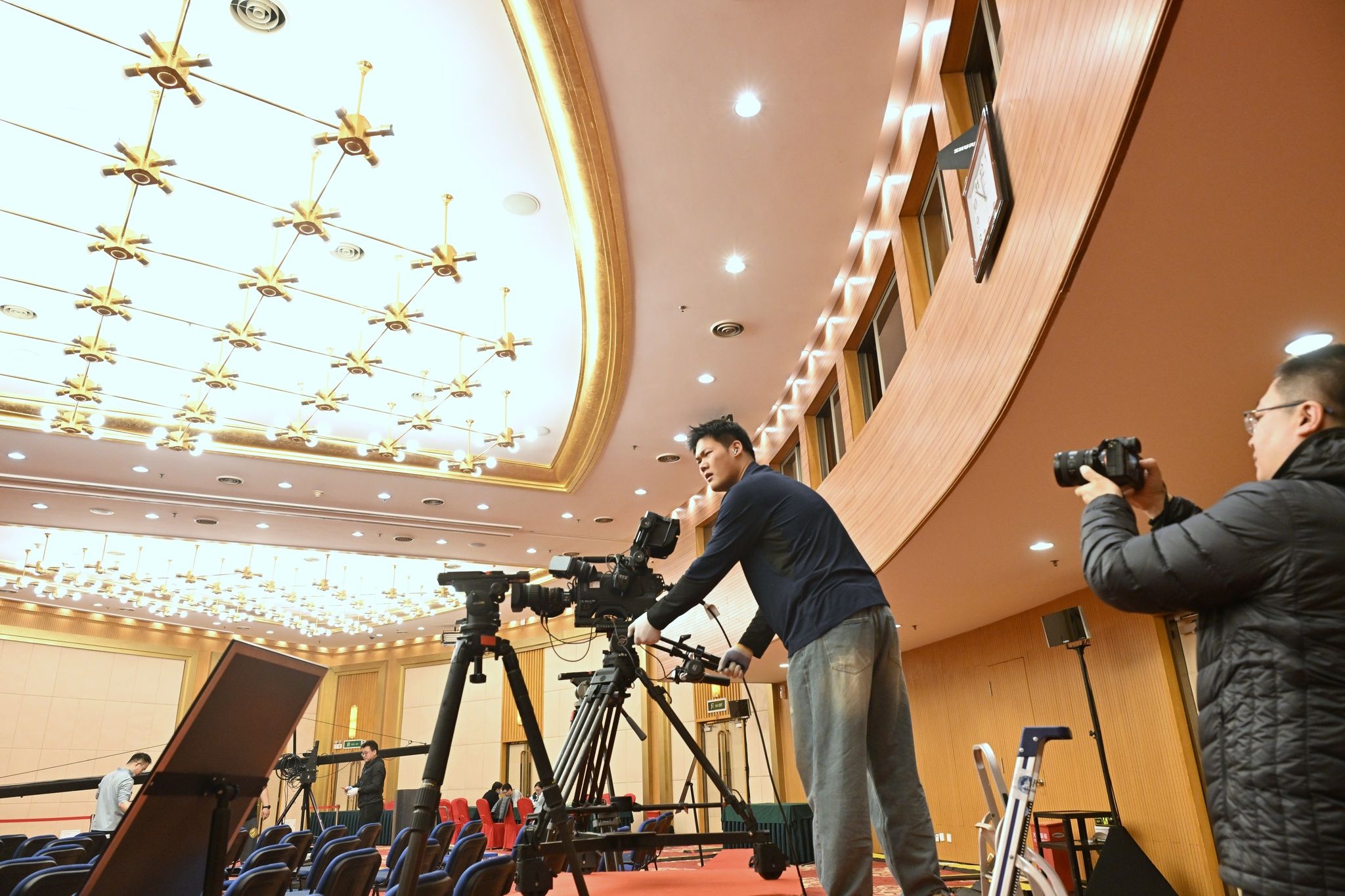 2025年2月27日,北京,在2025年全国两会即将召开之际,设在西长安街北侧梅地亚中心的全国两会新闻中心正式启用。