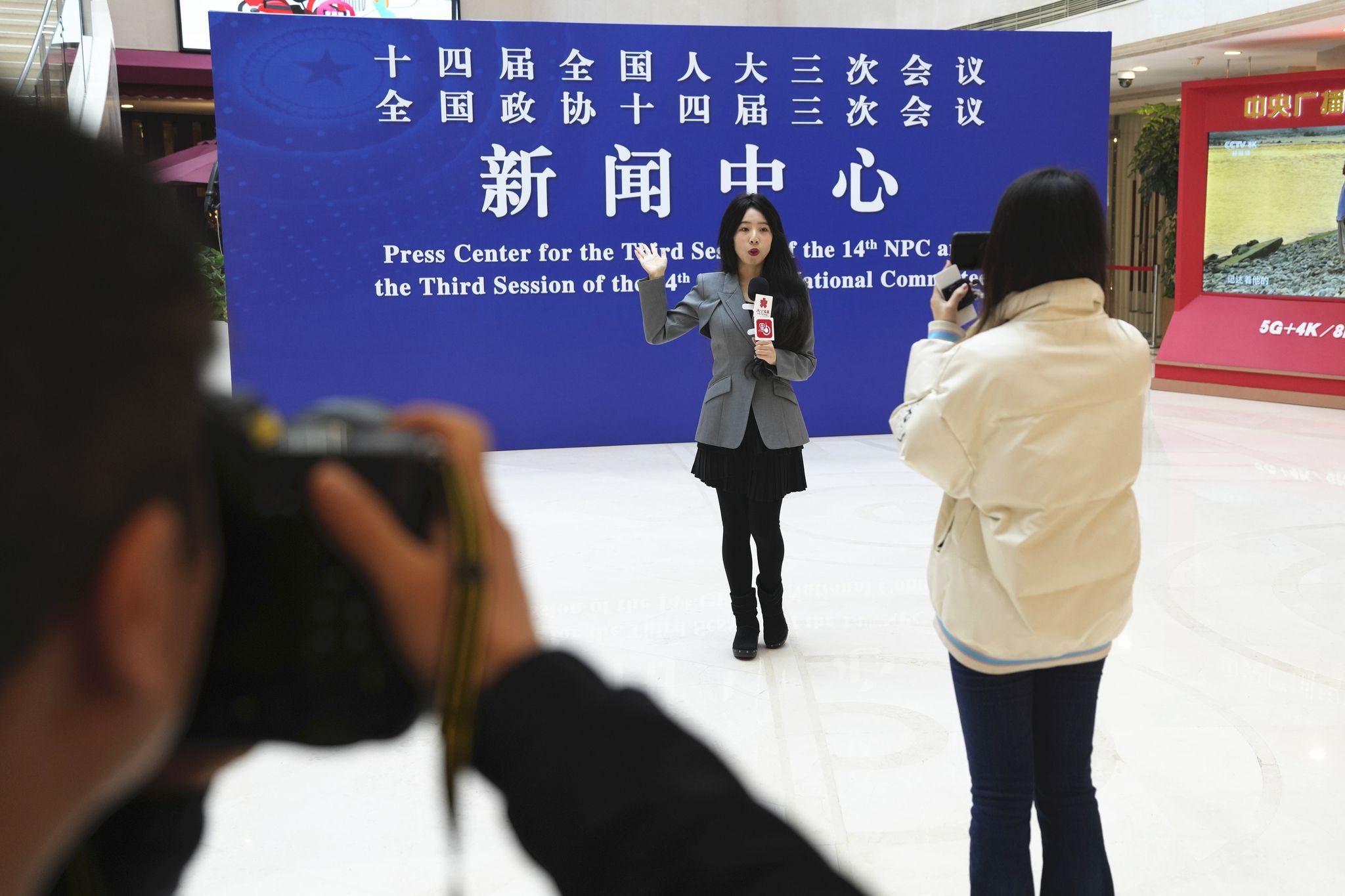 2025年2月27日,北京,在2025年全国两会即将召开之际,设在西长安街北侧梅地亚中心的全国两会新闻中心正式启用,为中外记者提供新闻服务。