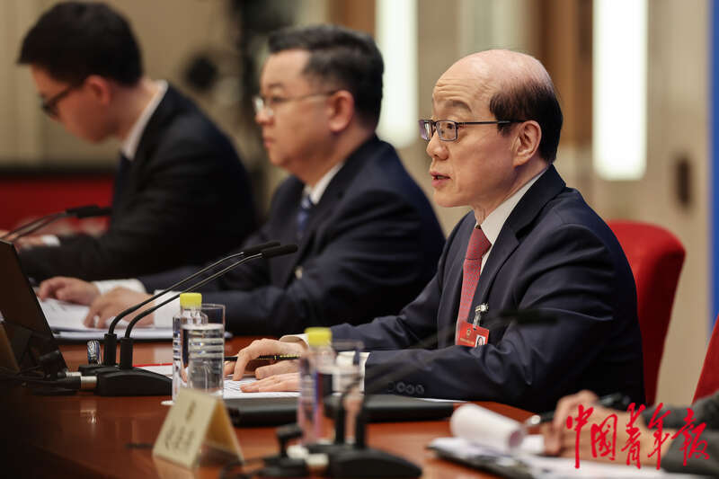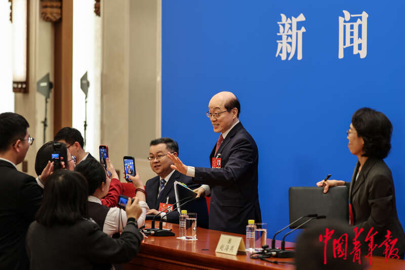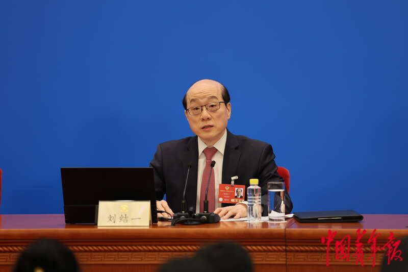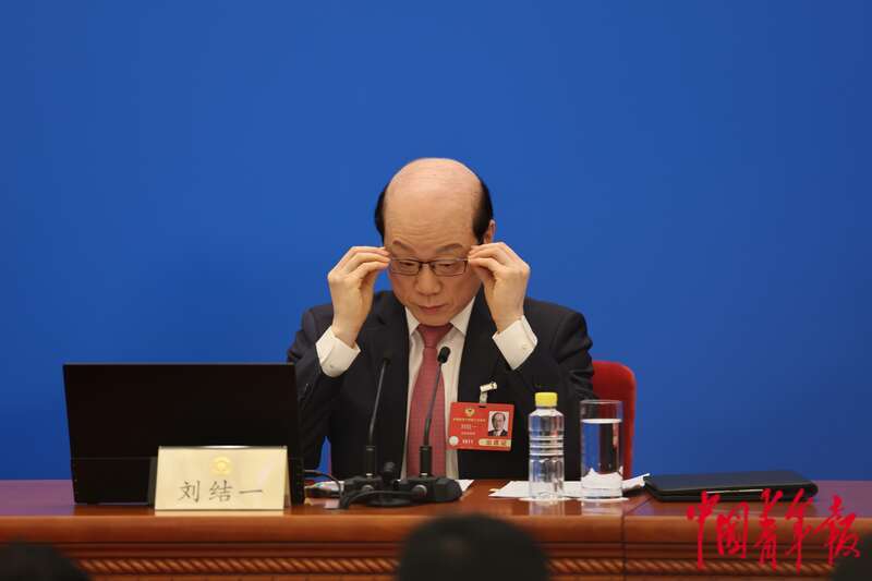 3月3日下午,北京,全国政协十四届三次会议新闻发布会在人民大会堂一层新闻发布厅举行,大会新闻发言人刘结一答记者问。中青报·中青网记者 曲俊燕/摄