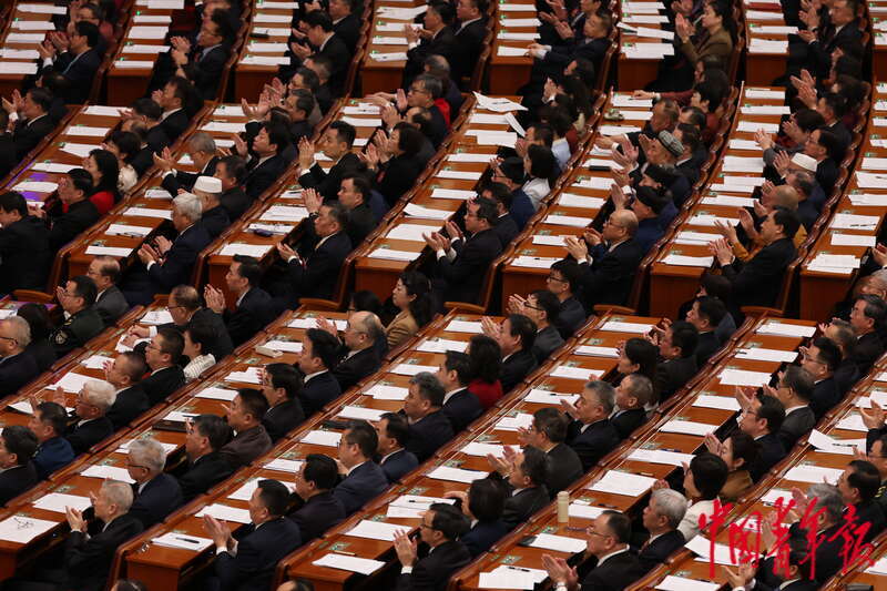 3月4日,北京,人民大会堂,全国政协十四届三次会议开幕会审议通过了政协第十四届全国委员会第三次会议议程。中青报·中青网记者 曲俊燕/摄
