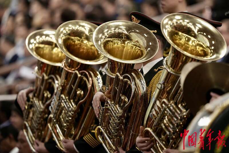 3月5日,北京,人民大会堂,第十四届全国人民代表大会第三次会议开幕会上,军乐团演奏中华人民共和国国歌。中青报·中青网记者 李隽辉/摄