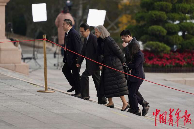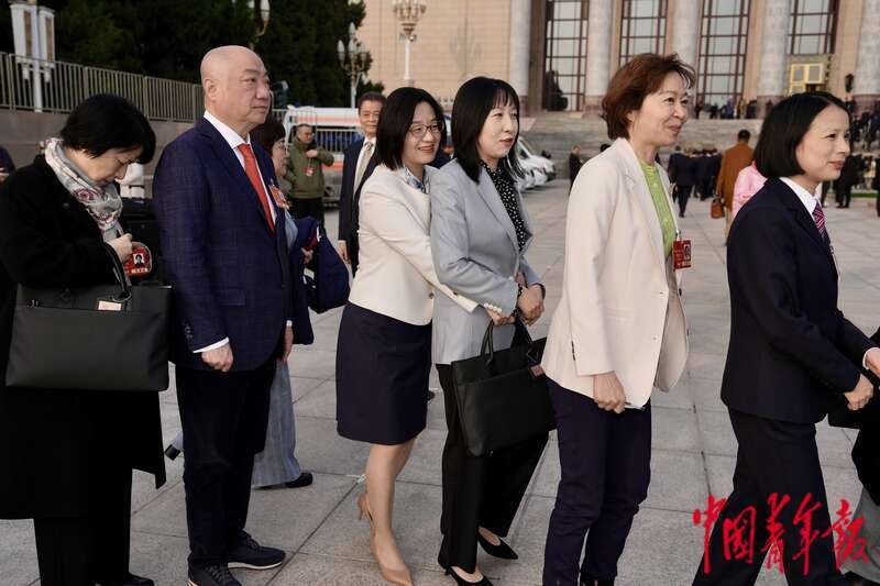 3月5日,北京,人民大会堂外,第十四届全国人民代表大会第三次会议即将开幕,代表纷纷入场。中青报·中青网记者 李隽辉/摄