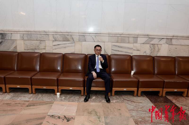 3月5日,北京,人民大会堂,第十四届全国人民代表大会第三次会议开幕会开始前,全国人大代表、清华大学国家金融研究院院长田轩接受媒体采访。中青报·中青网记者 李隽辉/摄