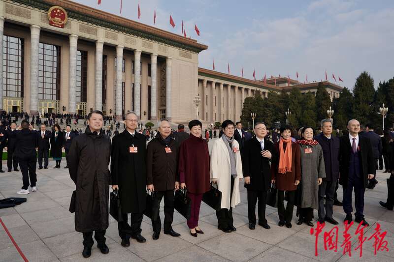 3月5日,北京,人民大会堂外,第十四届全国人民代表大会第三次会议即将开幕,上海代表团代表们在广场上。中青报·中青网记者 李隽辉/摄