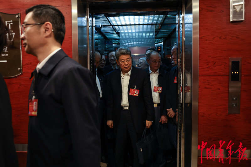 3月5日,北京铁道大厦,全国政协十四届三次会议经济界别当天的小组会议结束后,委员们乘坐电梯准备离开。中青报·中青网记者 曲俊燕/摄